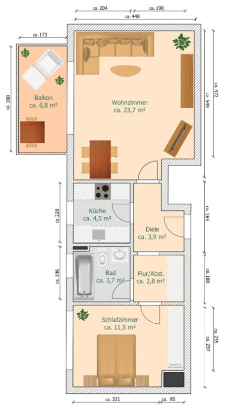 Die Wohnung ist unvermietet und wird im freien Zustand übergeben.