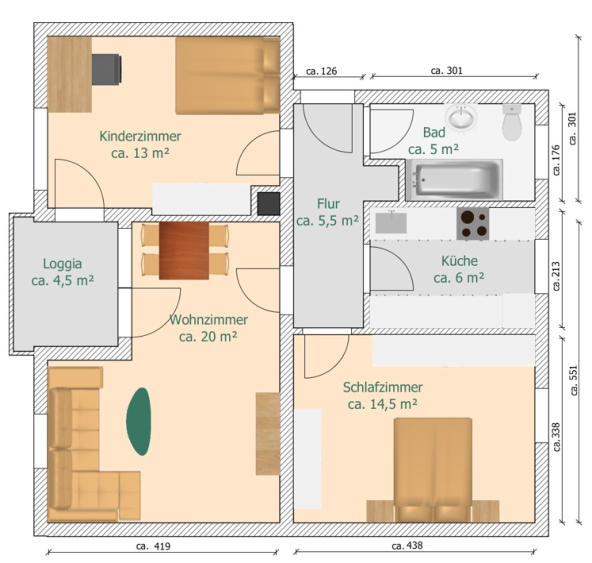 € 940,-- + Stellplatz im Freien 40,-- + Nebenkostenvorauszahlung € 205,--