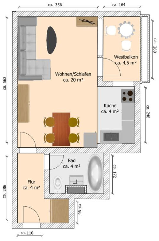 € 690,-- + Duplex-Parker (unten) € 80,-- + Nebenkostenvorauszahlung € 120,-- (gesamt € 890,--)